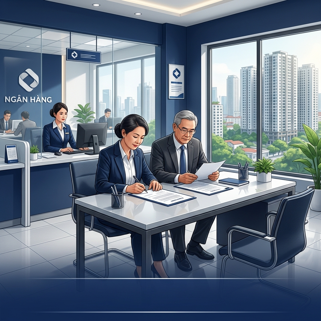 - Ký hợp đồng công chứng mua bán — có thể ký ngay tại ngân hàng hoặc văn phòng công chứng liên kết.